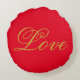 Gold Colour Script Red Love Wedding Calligraphy Round Cushion