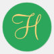 Gold-coloured H on Christmas Green Classic Round Sticker
