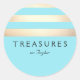 Gold Coloured Striped Modern Turquoise Blue Classic Round Sticker