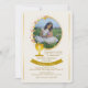 A light sand-coloured invitation with a delicate floral wreath photo window. The card also features a gold communion cup with a cross and a gold banner for the name. (<a href="https://www.freepik.com/free-photos-vectors/background">Background vector created by freepik - www.freepik.com</a>). (Pix). The card is easy to customise with your wording, font, font colour and choice of six paper types.<br/><br/>Not exactly what you're looking for? All our products can be custom designed to meet your needs at no extra charge.<br/><br/>Simply contact us at askcottonlamb@gmail.com<br/><br/>Coordinating products available: