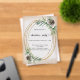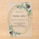A frosted background. An oval faux gold frame decorated with cones, white berres and pine greenery. Personalise and add the details. Black text.
