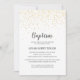 This Gold Confetti Baby baptism invitation is perfect for an elegant baptism or christening for a girl or boy. The design features faux gold confetti on a white background and simple dark grey calligraphy.
