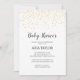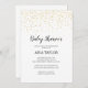 This Gold Confetti baby shower invitation is perfect for an elegant, gender neutral baby shower. The design features faux gold confetti on a white background, with dark grey calligraphy.