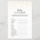 This Gold Confetti Baby Shower UK baby word scramble game is perfect for an elegant baby shower or sprinkle for a girl or boy. The design features faux gold confetti on a white background and simple dark grey calligraphy.