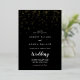 This gold confetti|black front and back gold foil wedding invitation is perfect for a simple, elegant wedding. The design features real gold foil glitter confetti with raised texture, on a black background with classy white calligraphy. Include more details (and optional online RSVP info) on the back of the card to save paper. QSD111