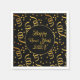New Year’s eve party napkins in black with gold confetti and text in the centre.  Wish guests “Happy New Year - with year date”, with festive napkins that come in custom styles and sizes.
