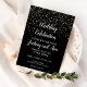 This gold confetti|black wedding celebration gold foil wedding invitation is perfect for a simple, elegant wedding. The design features real gold foil glitter confetti with raised texture, on a black background with classy white calligraphy. QSD111