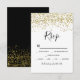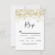 Gold confetti black white typography rsvp card