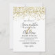 Gold confetti black white typography wedding invitation