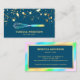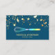 Elegant chef business card featuring beautiful gold confetti with faux gold foil accents on a blue background. Add your name and contact details to make a lasting first impression.