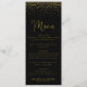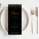 Compliment your classic wedding event with this gold confetti boho black wedding menu. The design features watercolor gold glitter, confetti in a black background.