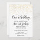 This Gold Confetti Calligraphy Our Wedding Invitation is perfect for a simple and elegant wedding. The design features faux gold glitter confetti on a white background with classy dark grey calligraphy.