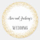 These Gold Confetti Calligraphy wedding invitation envelope seals are perfect for an elegant wedding. The design features faux gold confetti on a white background with simple dark grey calligraphy. Personalise the stickers with the names of the couple.
