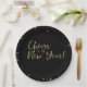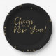 stylish and fun, these paper plates are perfect for your New Year's Eve party celebration. The design features gold confetti on a black background, and the text "Cheers to the New Year!"