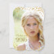 Elegant gold script graduation announcements. This beautiful gold confetti graduation announcement is easily customised with your photo. You can move the gold confetti and Class of 2015 to wherever you want on your photo, choose your font style and change the background and text colour to whatever you prefer.