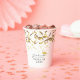 Gold Confetti Class of Graduation Party Paper Cups. Trendy script with golden confetti and a golden graduation cap. Add your grad’s name. You can change the year number.