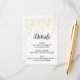 This classy Gold Confetti detail insert card is perfect for an elegant retirement party. The design features faux gold confetti with simple dark grey calligraphy on a white background.