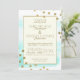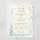 Festive and Modern aqua blue watercolor base wedding invitation framed in gold and accented with gold confetti dots printed design formal wedding invitation.