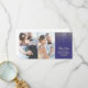 Vintage navy and glamour gold confetti wedding thank you card with 3 wedding photos