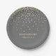 Elegant grey ad gold confetti dots wedding paper plates