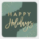 Celebrate the holidays with modern gold confetti holiday stickers. The stylish holiday stickers feature a splash of light green watercolor with a dark green background, faux gold foil confetti, and a faux gold foil script font that says "Happy Holidays". The stickers work perfectly as envelope seals, holiday party favours, and more!