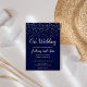 This gold confetti|navy our wedding foil invitation is perfect for a simple, elegant wedding. The design features real gold foil glitter confetti with raised texture, on a navy blue background with contrasting classy white calligraphy. QSD111