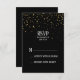 This classy Gold Confetti on Black Bachelorette Party RSVP card is perfect for replying to an event that honours the bride-to-be. The design features faux gold confetti on a black background with simple white calligraphy.