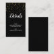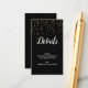 This Gold Confetti on Black Graduation Party details insert card is perfect for an elegant Graduation party, whether from High School, College, Nursing School or Grad School. The stylish design features faux gold confetti with simple white calligraphy on a black background. It co-ordinates perfectly with the Gold Confetti on Black Graduation Party Invitations.