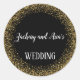 These Gold Confetti on Black wedding invitation envelope seals are perfect for an elegant wedding. The design features faux gold confetti on a black background with simple white calligraphy. Personalise the stickers with the names of the couple.