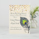 A beautiful and rustic scroll patterned design with gold confetti peacock feather accent this elegant wedding invitation. Customisation invitation featuring whimsical peacock feather illustration.