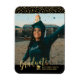 Share your special celebration with your family and friends. This modern graduation announcement magnet features stylish gold script "Graduate" and confetti on a black background. You can personalise the text and photos. Matching party supplies and gifts are available at my store BaraBomDesign.