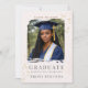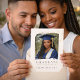 Modern graduation portrait theme with warm gold confetti accents on a soft cream background. Clean photo-focused layout with classic serif typography highlights the senior portrait, suited for high school graduation announcements, senior celebration gatherings, and family graduation events.