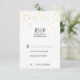 This classy Gold Confetti Retirement RSVP card is perfect for an elegant retirement party or classy reception. The design features faux gold confetti on a white background with dark grey calligraphy.