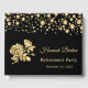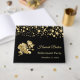 Golden effect confetti and English roses on black background Retirement Party Guest Book. The background colour can be changed