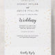 This Gold Confetti all in one wedding invitation is perfect for a simple, classy wedding. The elegant whimsical design features faux gold glitter confetti and minimalist calligraphy with a modern boho feel.