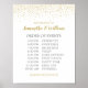 Wedding schedule sign gold confetti design pattern.