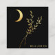 *~* Energy Enhanced Esoteric MINIMAL SIMPLE LUNAR COSMIC CELESTIAL MYSTICAL Business Card: Crescent Moon and GOLD LEAVES FOLIAGE GREENERY illustration on a BLACK background.