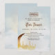 This striking invitation features a bold gold crescent moon and mosque silhouette emerging from soft clouds. It provides a clean, modern aesthetic for your Ramadan dinner party. Simply purchase, edit, and use the instant download to print or share digitally.