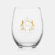 Gold Crest circle and 2 horses, badge royal crown Stemless Wine Glass