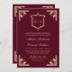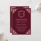 Gold Crest Monogram QR Code Burgundy Wedding Invitation