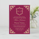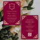 Gold Crest Monogram QR Code Magenta Wedding Invitation