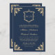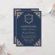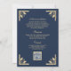 Gold Crest Monogram QR Code Navy Blue Wedding Invitation