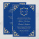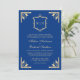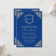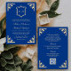 Gold Crest Monogram QR Code Royal Blue Wedding Invitation