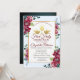 Gold Cross Burgundy Flowers First Holy Communion Invitation