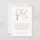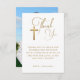 Gold Cross Calligraphy First Communion Photo Thank You Card