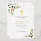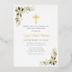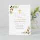 Gold cross floral first communion invitation foil