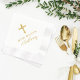 This religious baptism celebration napkin design features a cross with God Bless wording that can be personalised with baby's first name. Printed in gold coloured digital ink.