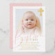 Gold Cross Pale Pink Script Photo Baptism Foil