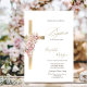 Gold Cross Pink Flowers Baptism Glitter Confetti Invitation