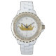This white, rhinestone watch features a gold crown on the face. Feel like a queen while wearing this watch!